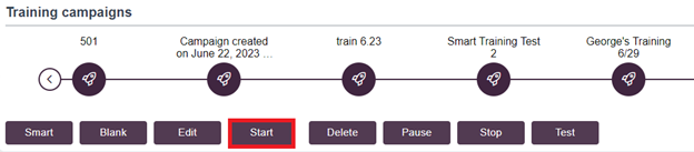 9. You can hit the” Start” button after confirming the testing. (Note**This will take the training campaign out of the idle state into the “Scheduled” or “Sending” state.)