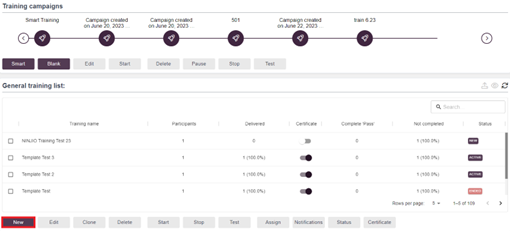 2. Click “New” to start the configuration process in the Training Campaign view.