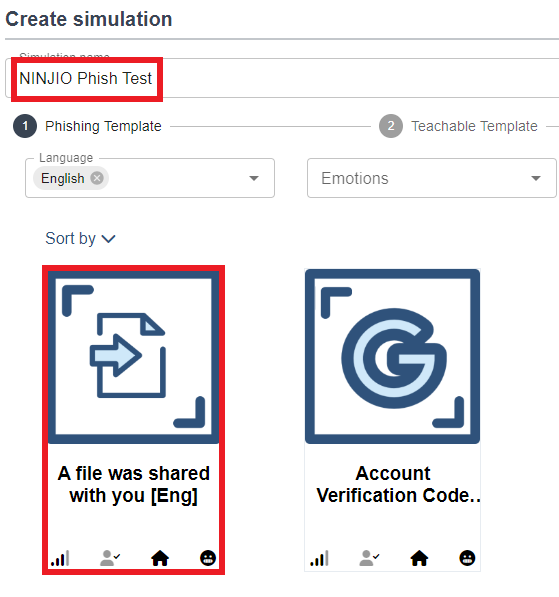 3. In the Create Simulation page, rename the simulation name, select your phishing template, and hit “Next.”