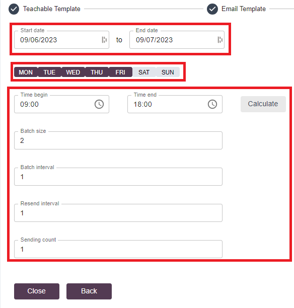 7. On the final page, “Scheduling,” you can select the date, time, and batch frequency to launch the training. Once you have adjusted the fields, you can hit “Finish”.