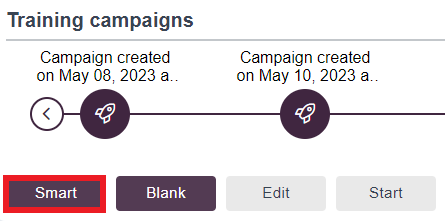 1. You can create a Smart Training Campaign by going into Campaign Management--> Training and selecting the “Smart” button in the upper left-hand corner.