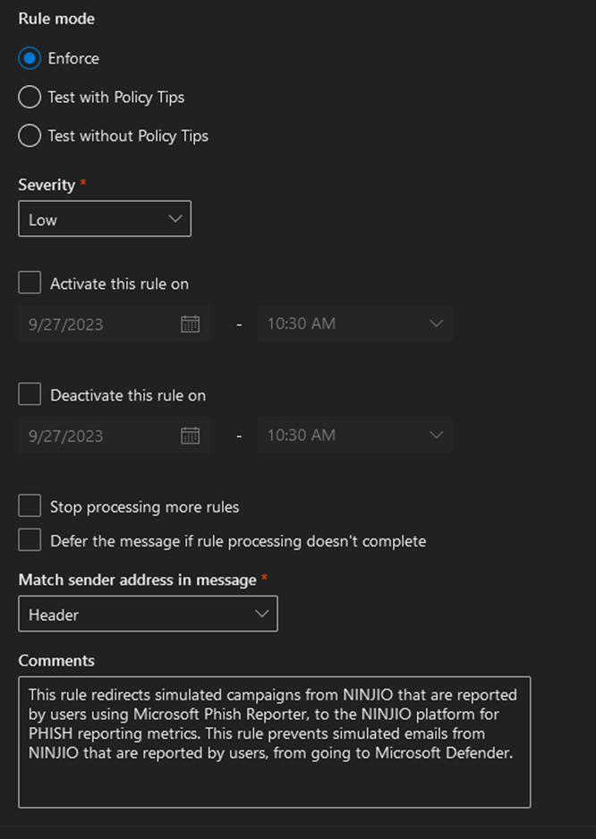 2. Create a mail flow rule in Exchange that will direct emails to the platform.