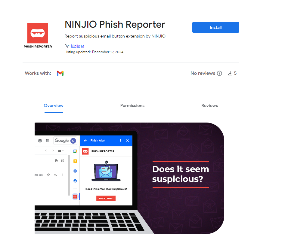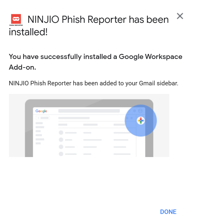 1. Log in as an administrator and install the NINJIO Phish Reporter from the Google Workspace Marketplace.